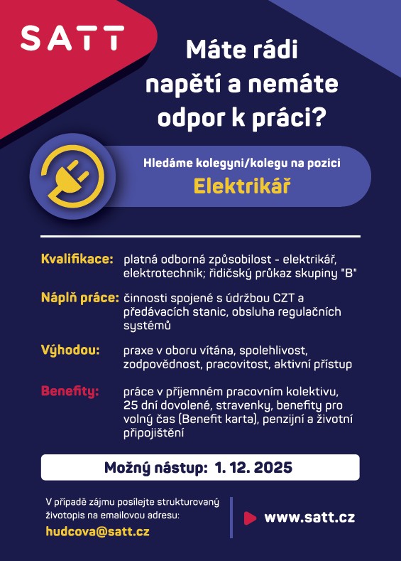 V případě zájmu pošlete strukturovaný životopis na emailovou adresu: hudcova@satt.cz